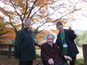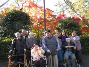 11月は紅葉の季節、デイ飯岡は、黒瀬ダムへ行きました。湖畔がとても美しく、隠れた紅葉スポットです。今年は割と暖かく、緑から紅葉への移り変わりを日々楽しみました。11月11日~20日の日程でドライブしました。紅葉の色と、皆さんの笑顔いっぱいとても鮮やかです。