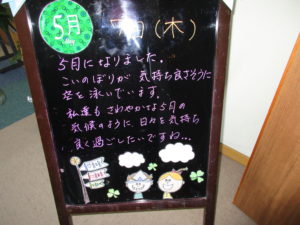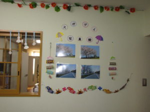 さわやかな気候に心躍る季節ですが、4月7日に政府が緊急事態宣言を出してからはお出掛けも控えているため、皆様に少しでも季節を感じていただこうと「スポーツデイたんばら」では、職員の手作りの飾りで、皆様が笑顔になるお手伝いをさせていただいております。