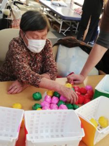 トレーと同じ色の丸玉を入れていきます。