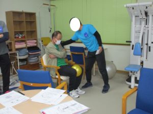 『個別運動』で、御利用者様お一人お一人に、その日の体調やお身体の様子を伺いながら、状態に合わせて運動を提供しています。