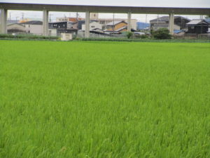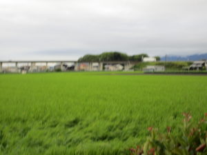 窓から見える稲作は
